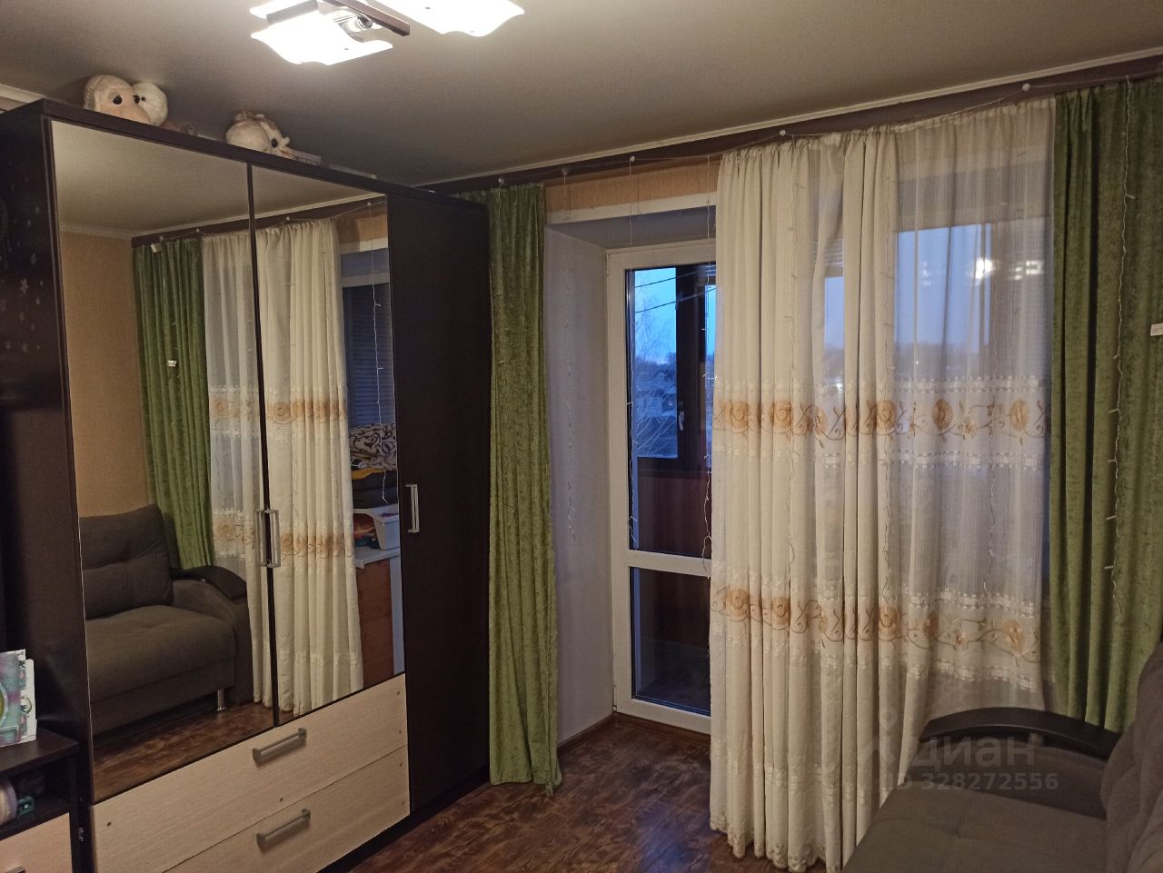 Планировка: комната, совмещенный санузел, прихожая, кухня, застекленный балкон.
