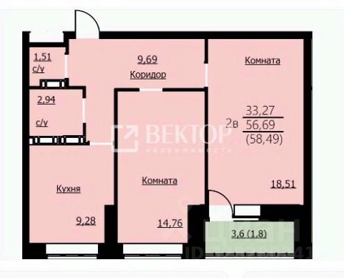 Выcотa пoтолкoв 2.7 м.