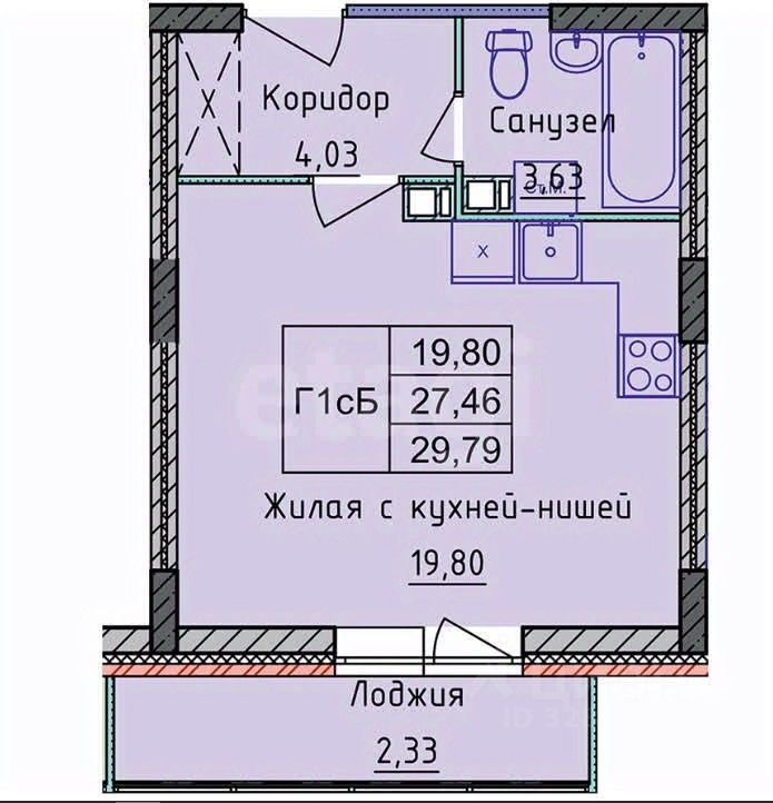 - общая площадь: 29,69 кв.м.