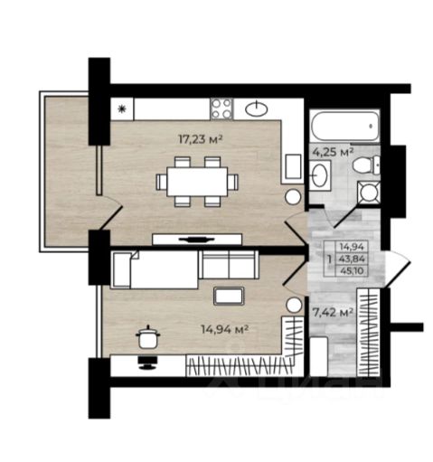 Продаётся 1-комнатная квартира в строящемся доме (Дом у реки), срок сдачи: II-кв. 2027, общей площадью 45.1 кв.м., на 2 этаже. РАСПОЛОЖЕНИЕ