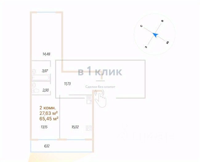 Продается квартира свободной планировки, 65,45 м²