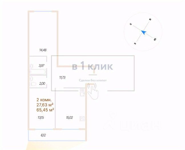 Общая площадь65,45 м²