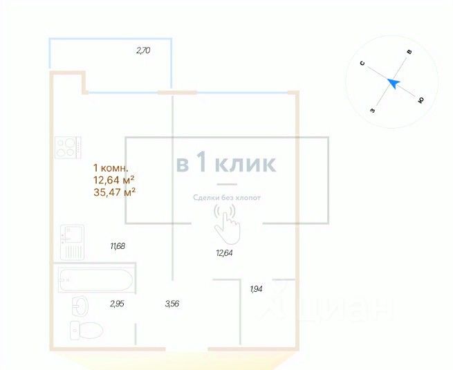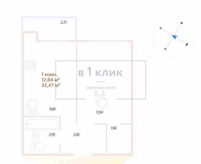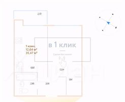 Квартира свободной планировки, 35,47 м²