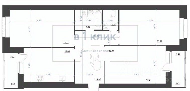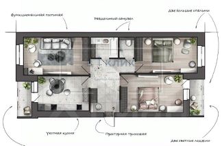Квартира с предчистовой отделкой - стяжки полов, подготовка стен, алюминиевое остекление балконов и лоджий, высокие потолки.