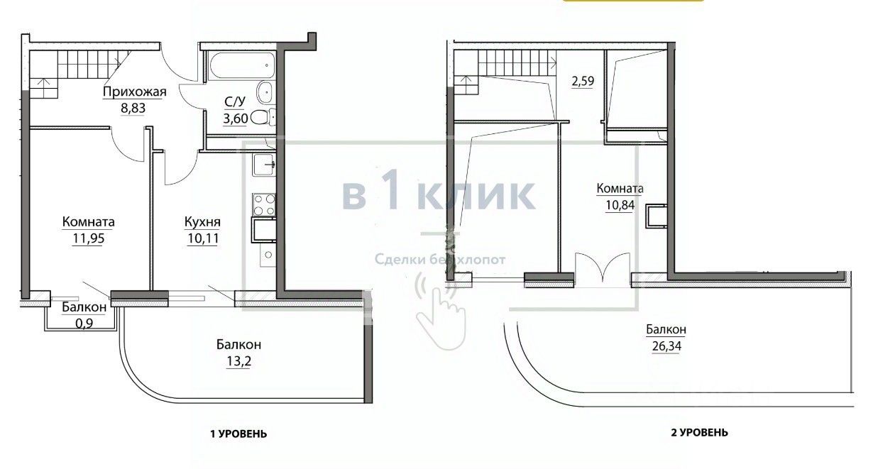 Двухуровневая 2-к квартира. Подобных предложений больше нет в Ярославле!