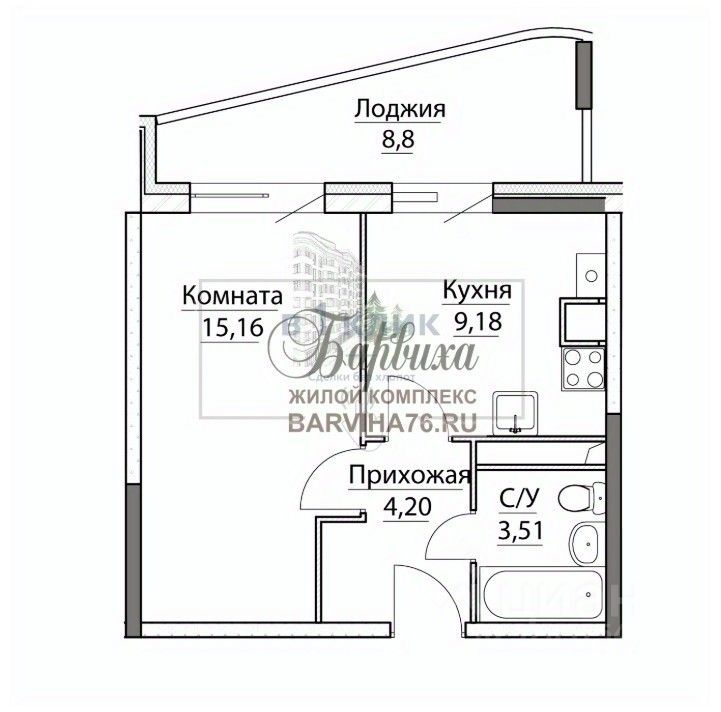 Большая лоджия - 8,8 кв.м.
