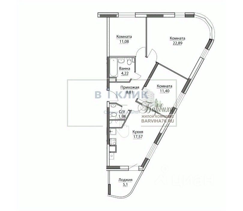 Большая лоджия - 5,1 кв.м.