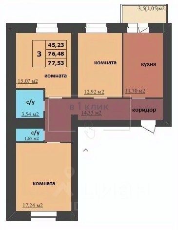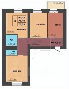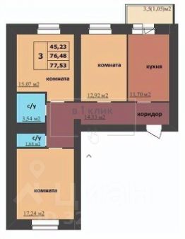 Общая площадь77,53 м²