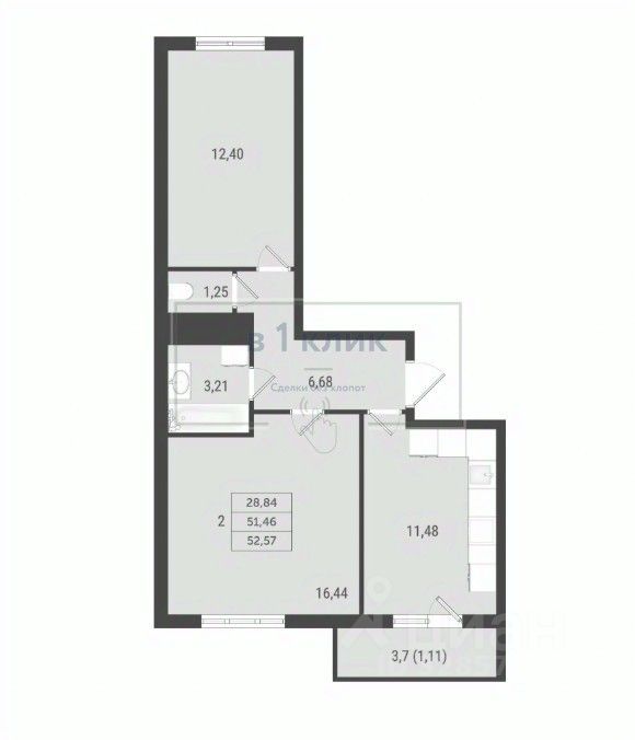Общая площадь52,57 м²