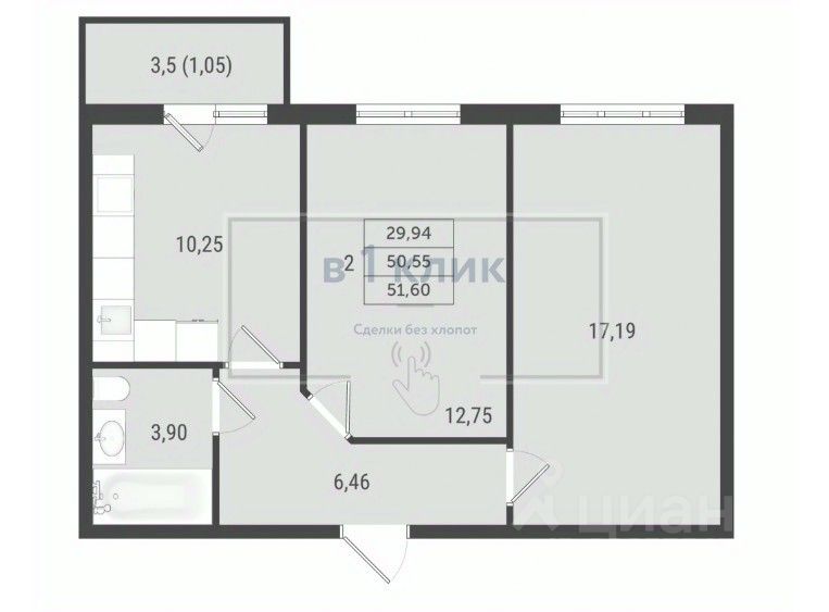 Общая площадь51,6 м²