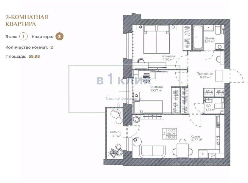 Общая площадь59,98 м²