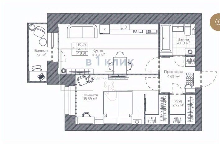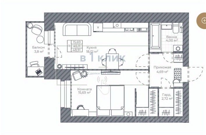 Общая площадь48,91 м²