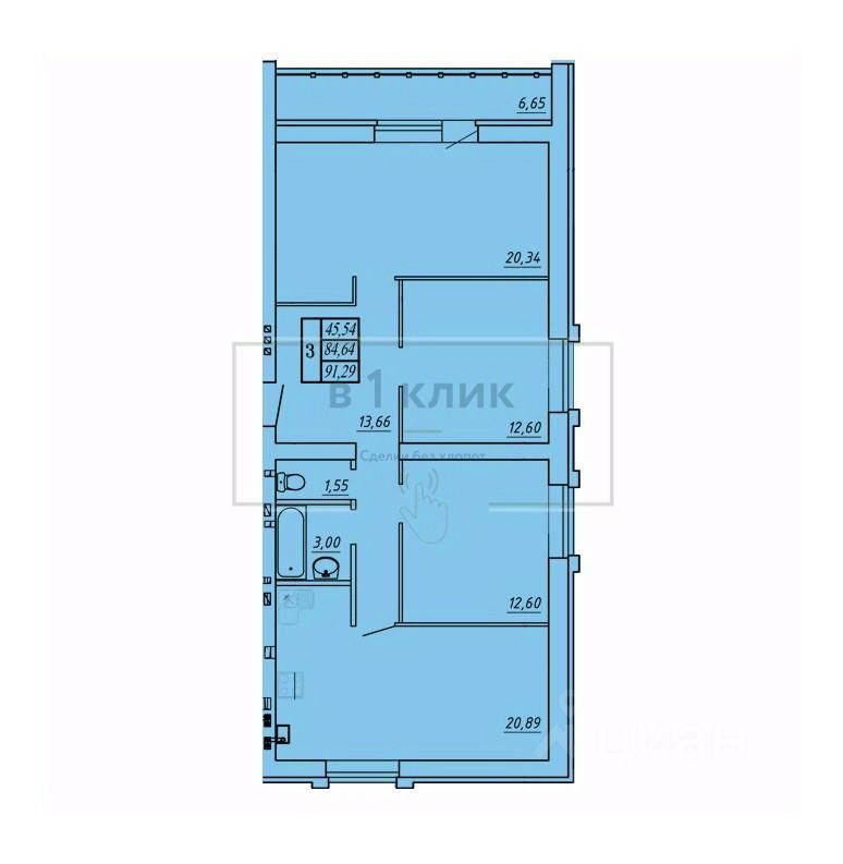 Общая площадь91,29 м²
