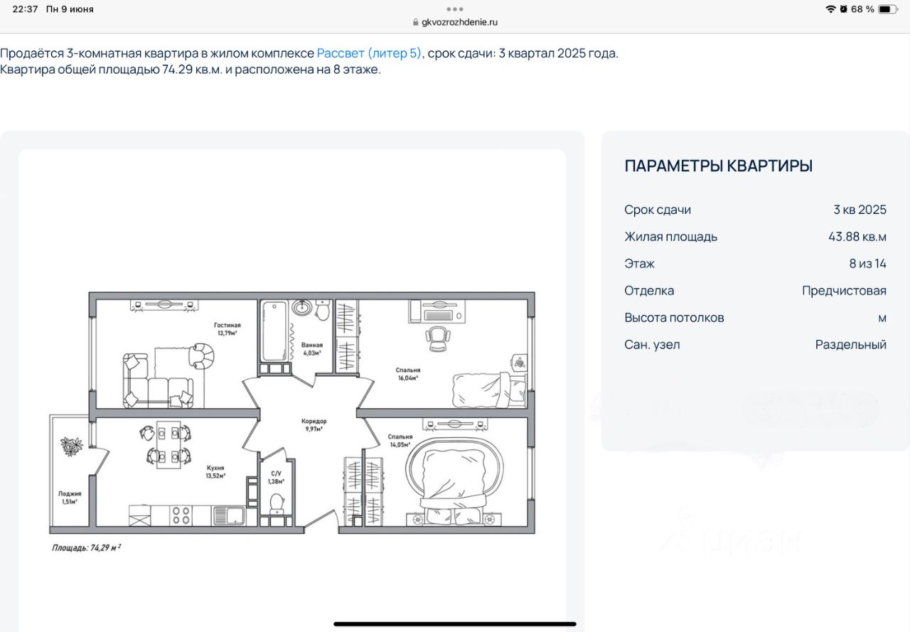 74,29 м²