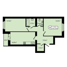 2-комн. квартира, 69,68 м²