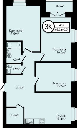 90 м²