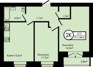 Общая площадь58,6 м²