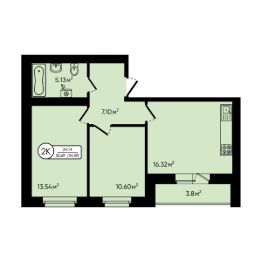 2-комн. квартира, 54,59 м²
