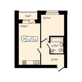 1-комн. квартира, 39,53 м²