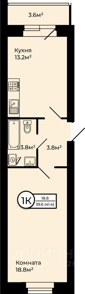 Общая площадь41,4 м²