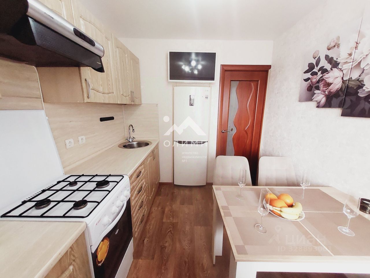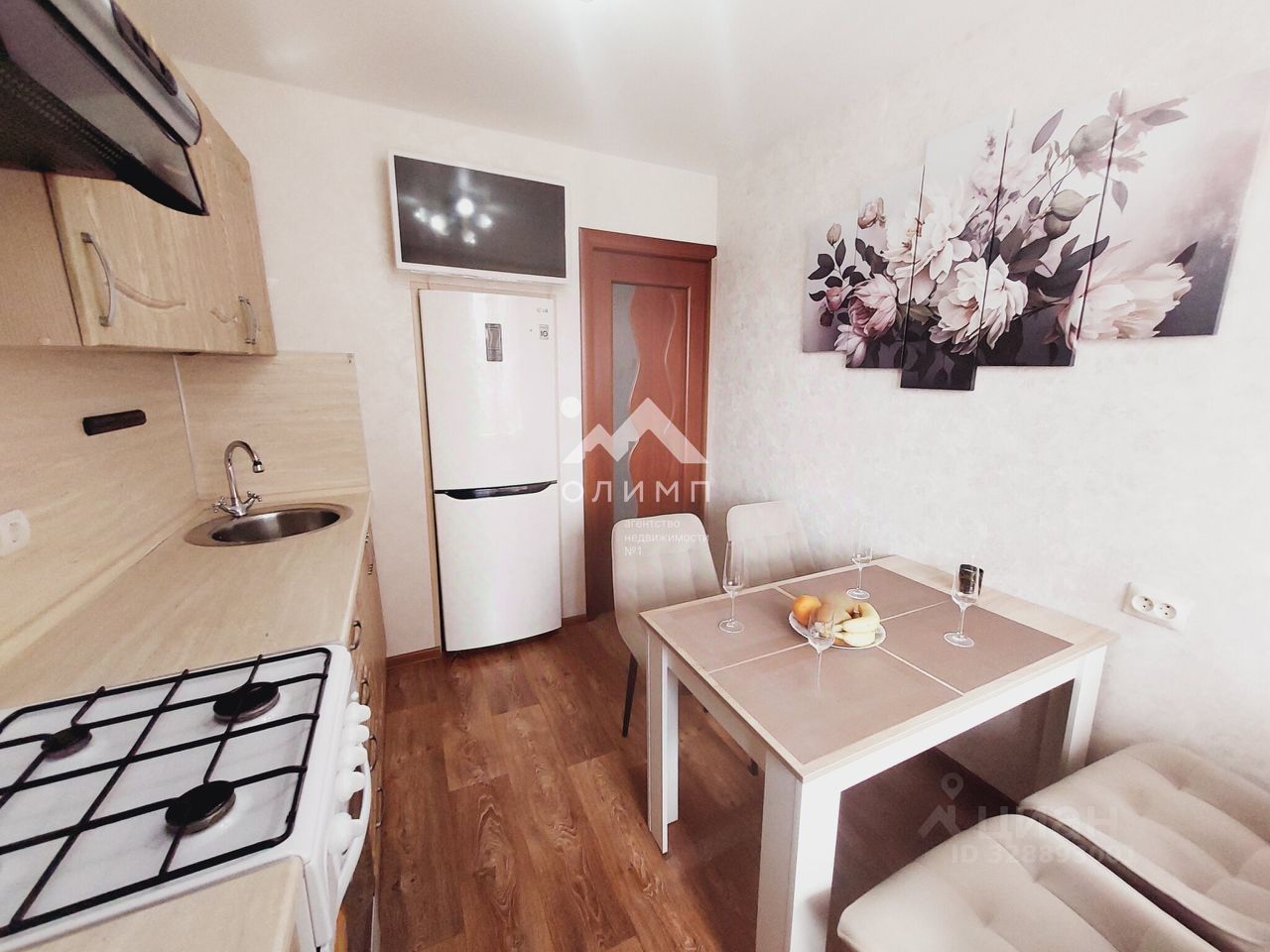 В дар новым собственникам остается кухонный гарнитур, встроенный холодильник, телевизор над ним, стиральная машина, полностью спальный гарнитур, полностью гостиный гарнитур и диван.
