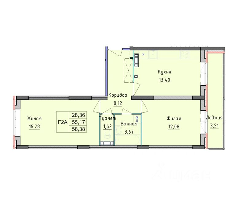 - Современная планировка - две раздельные комнаты и просторная кухонная зона.