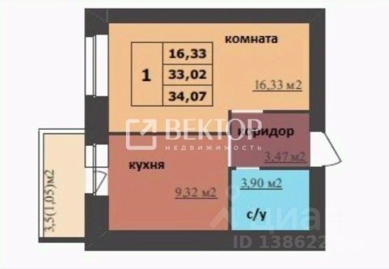 Представляем вашему вниманию уютную однокомнатную квартиру на вторичном рынке, которая станет отличным решением для комфортной жизни или выгодного вложения. Общая площадь в 33 кв. м грамотно распределена: просторная жилая зона составляет 16.1 кв. м, кухня - 9.5 кв. м.