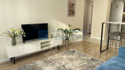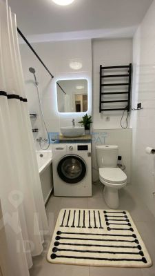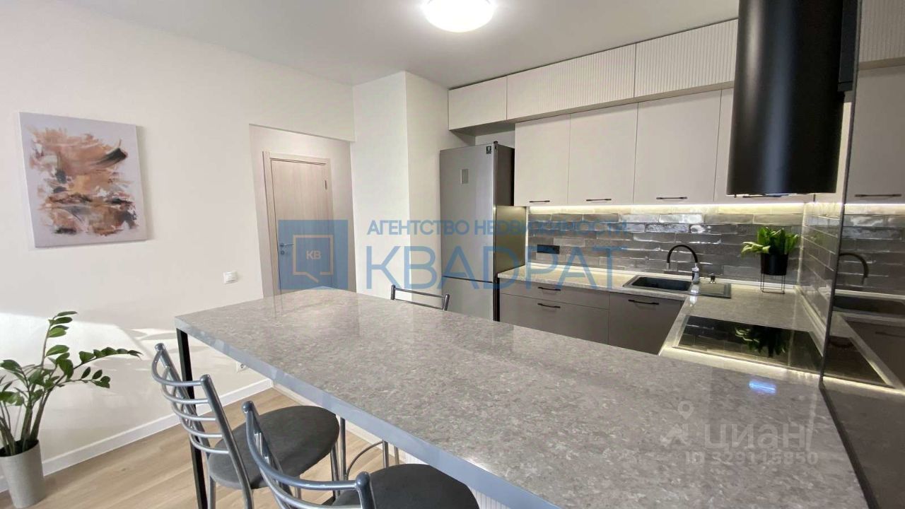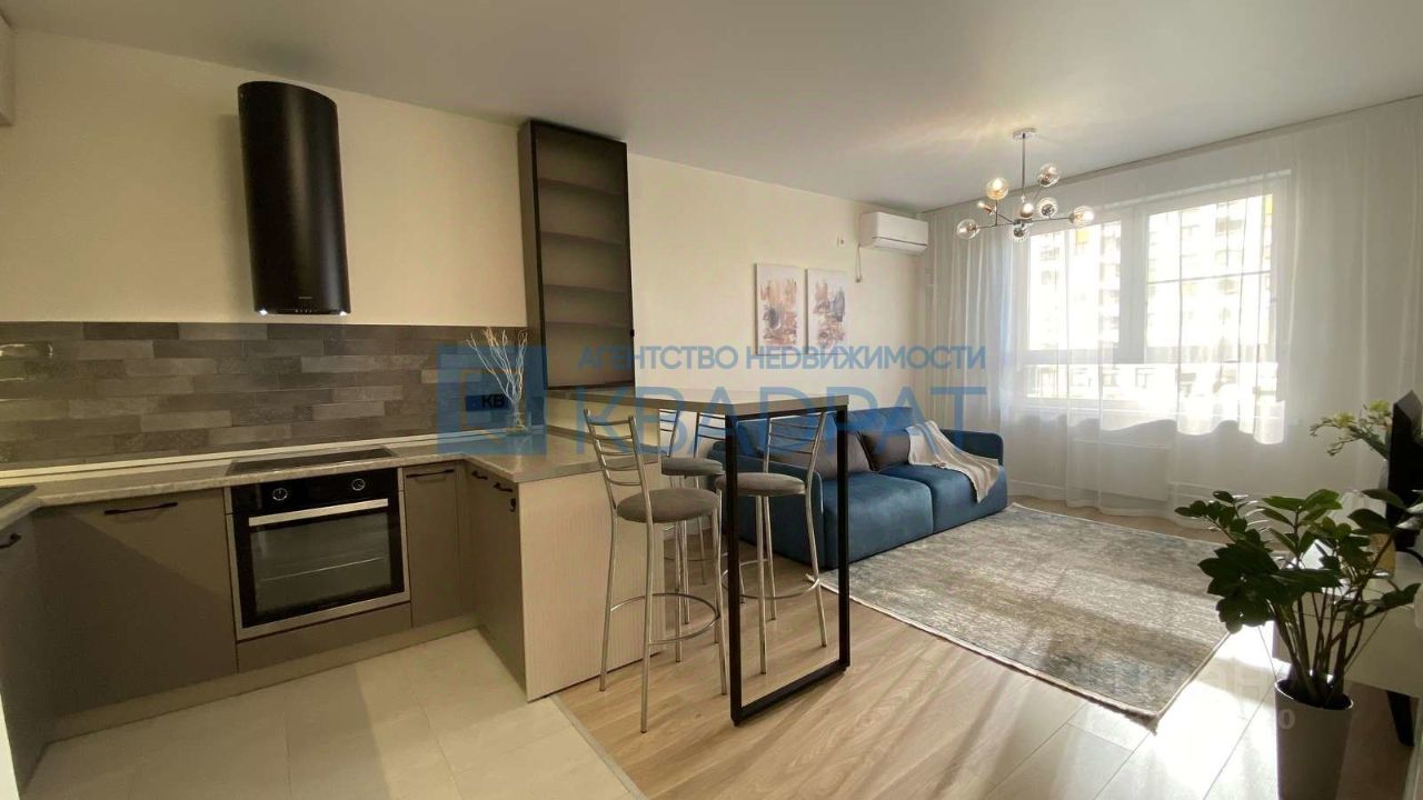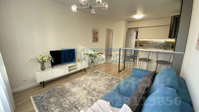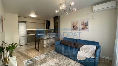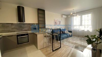 В квартире выполнен ремонт в приятных тонах, на полу ламинат, обои под покраску, потолок натяжной. Огромная кухня-гостиная 21,5 м2, остается кухонный гарнитур, бытовая техника: варочная поверхность, духовой шкаф, посудомоечная машина Siemens, вытяжка, холодильник Samsung, диван, ТВ-тумба. Спальня 14,5 м2, остается кровать с подъемным механизмом, матрас, шкаф-купе. С/узел в керамической плитке, остается стиральная машина Bosch. Также в подарок остаются гармонично подобранные шторы.