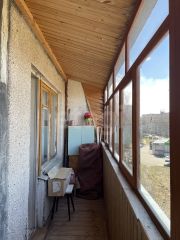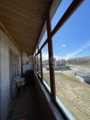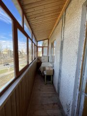 Кухня удобной квадратной формы, комната - 18 м.кв., окна - деревянные, состояние - хорошее. Лоджия - 6 м.кв., во всю ширину квартиры. Выход на лоджию из комнаты.