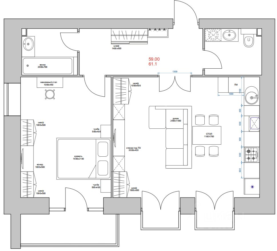 61,4 м²