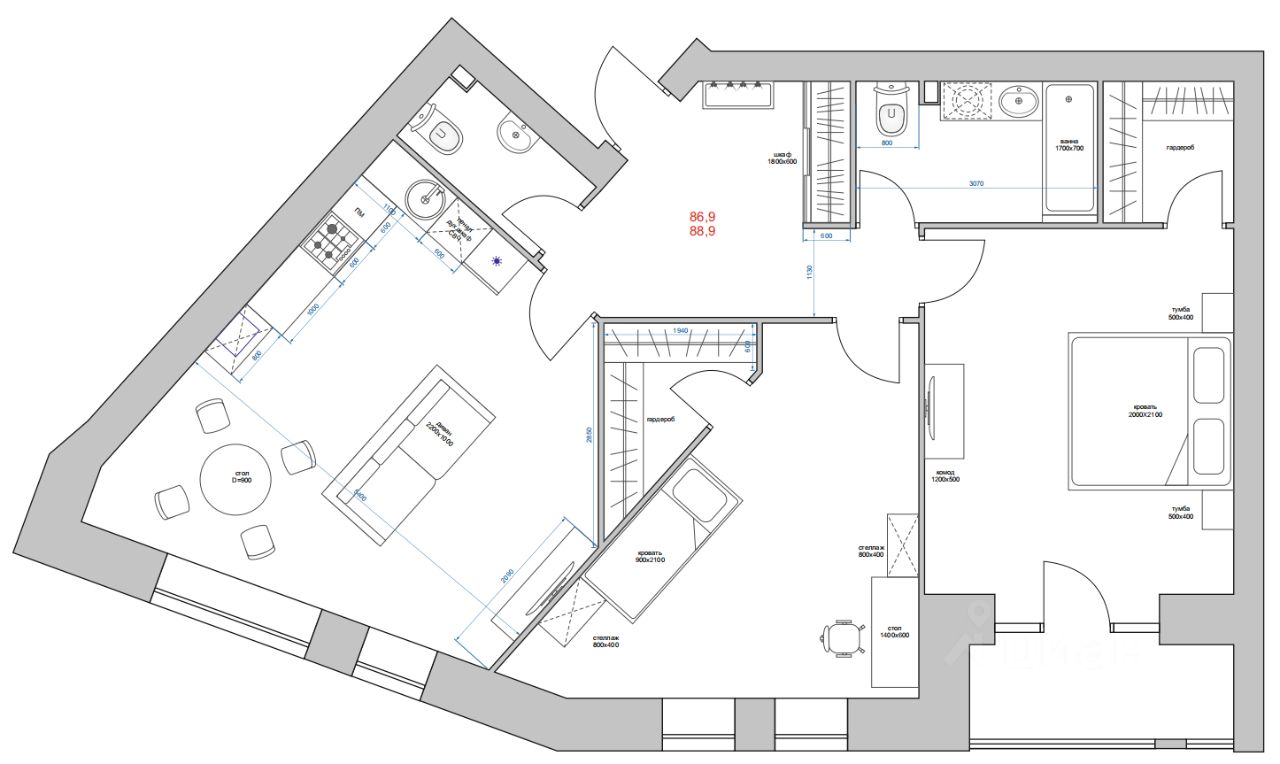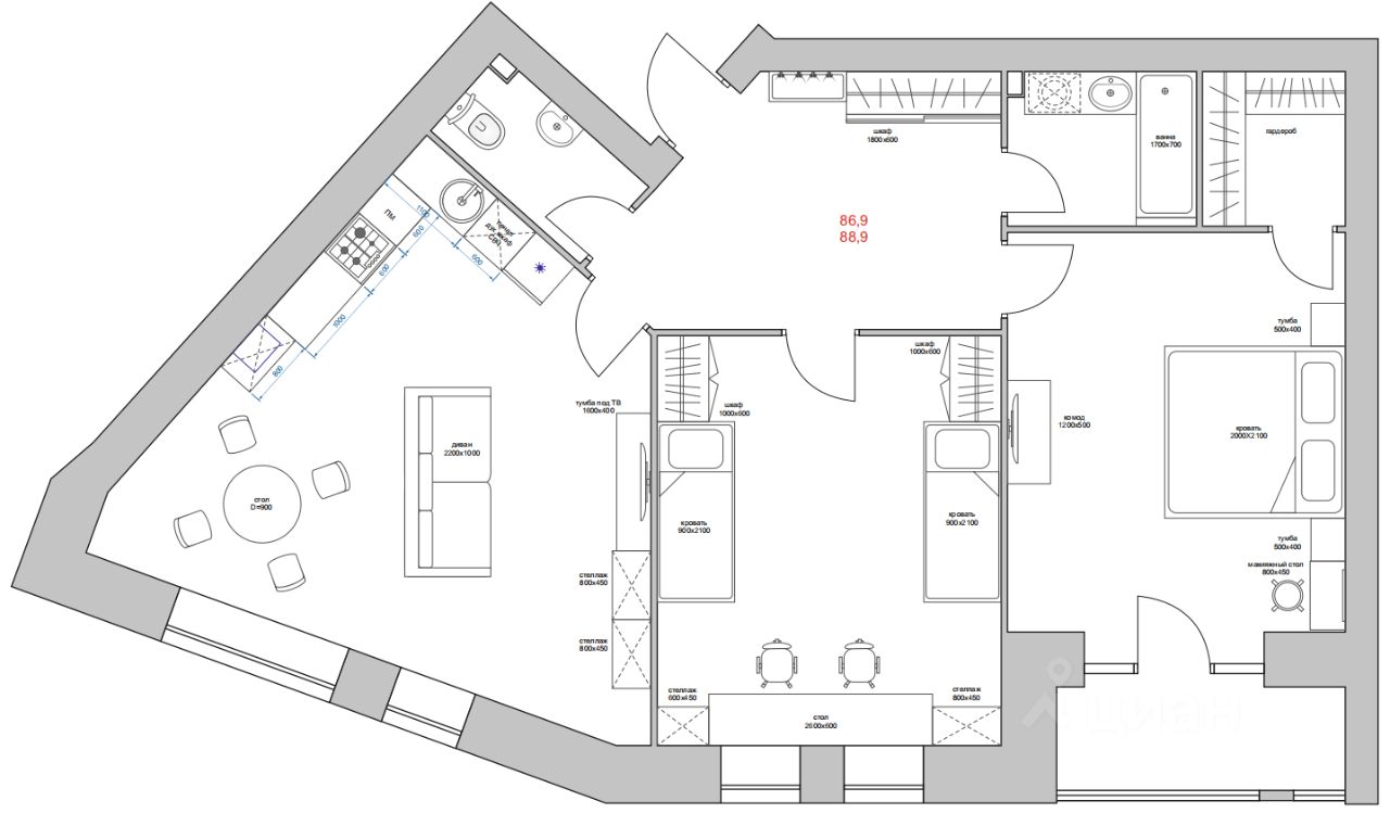 - Площадь 89 кв. м
