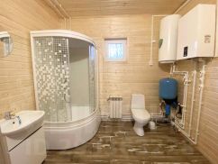Коммуникации: Электричество 15 кВт, вода-скважина, канализация-септик, отопление от электрического котла с разводкой батарей, установлены теплые водяные полы, проведена скрытая электрика.