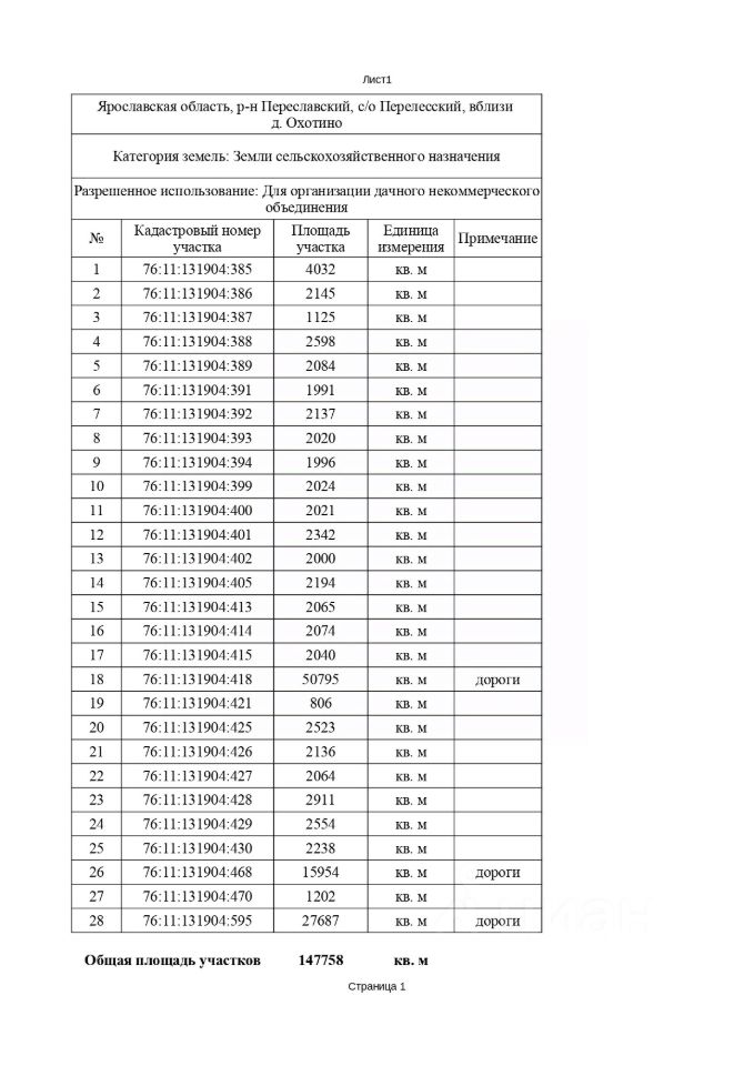 Продаю 28 земельных участков с общей площадью 147758 кв.м (~ 14,8 га) расположены в Ярославской области, р-н Переславский, с/о Перелесский, вблизи д. Охотино. Категория земель: Земли сельскохозяйственного назначения. Разрешенное использование: Для организации дачного некоммерческого объединения. Подходит под строительство "Кемпенга", "Глэмпинга", "Домиков под сдачу" на сваях на основании Федерального закона от 18 марта 2023 г. 77-ФЗ.