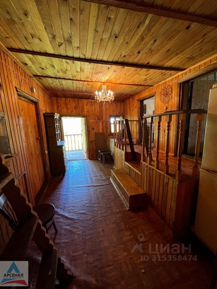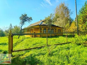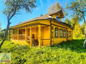 Дом бревенчатй рубленый, с открытой и просторной верандой (18 кв.м.) В доме 5 комнат, 2 кухни, туалет, открытая веранда. Общая площадь - 100м.кв. Дом обставлен мебелью, проведено электричество, имеется печка с плитой.