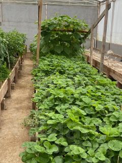 На участке установлена шикарная теплица 20на10 на монолитной плите с теплыми водяными полами и отоплением от дровяного котла. Электричество 380 квт. Также установлен развод воды по грядкам с автополивом и температурным режимом.