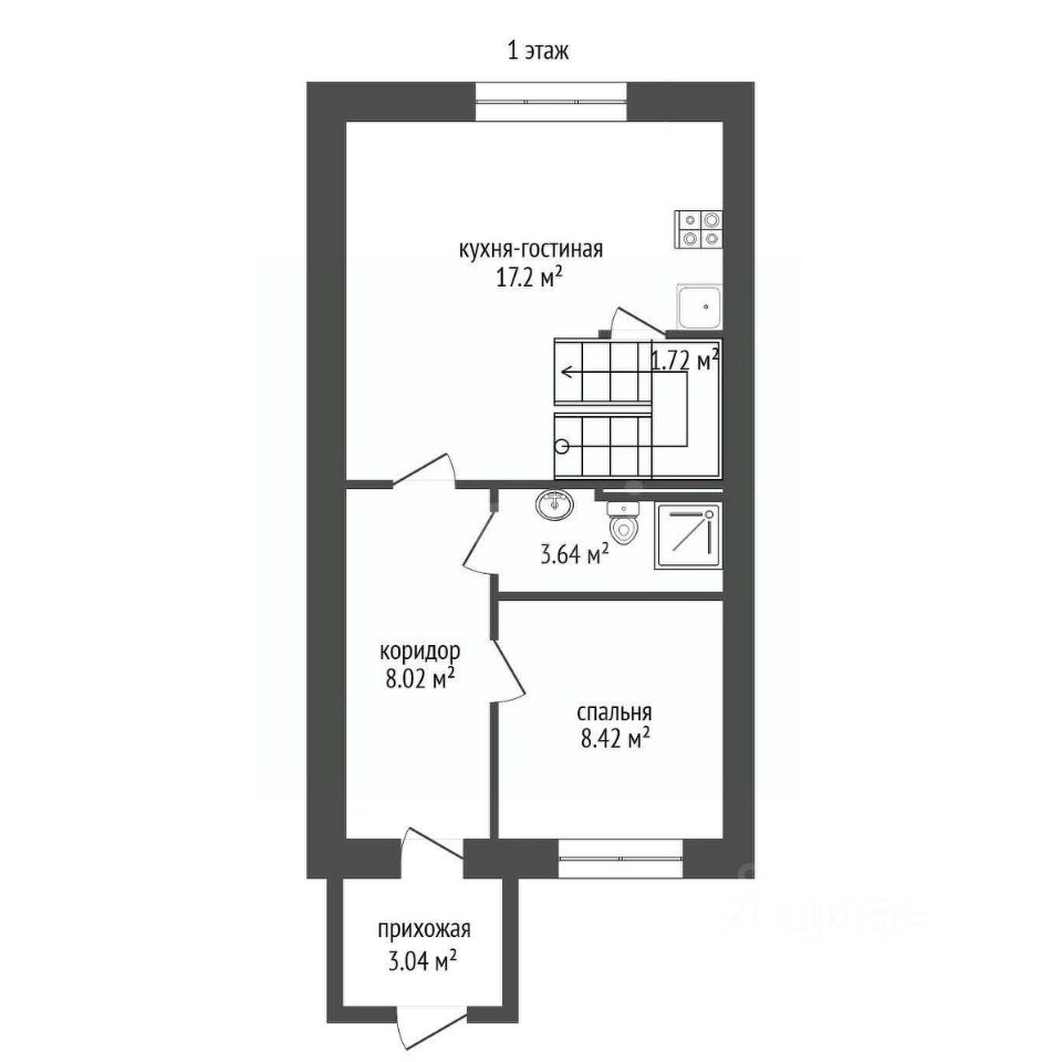 Общая площадь таунхауса 83,3м2!