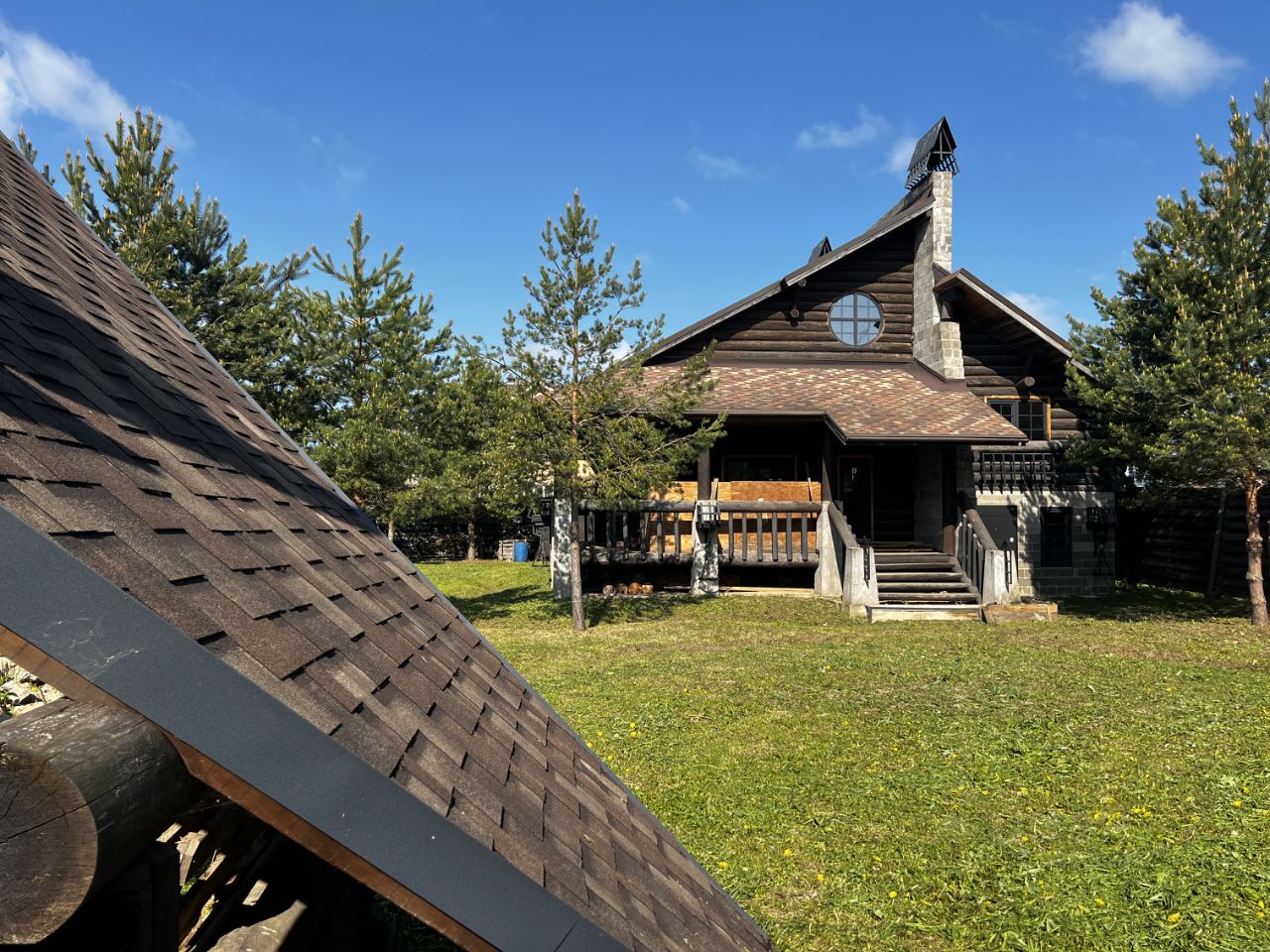 На участке дизайнерская беседка с большим очагом камином для приготовления пищи. Высажены взрослые сосны по ландшафтному плану созданному архитектором. Дом под чистовую отделку.