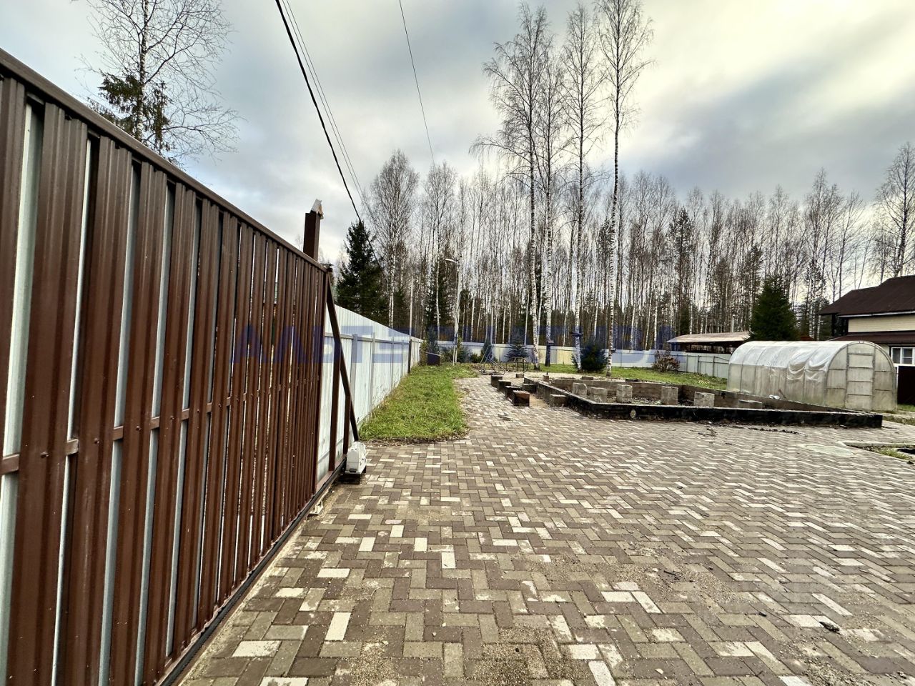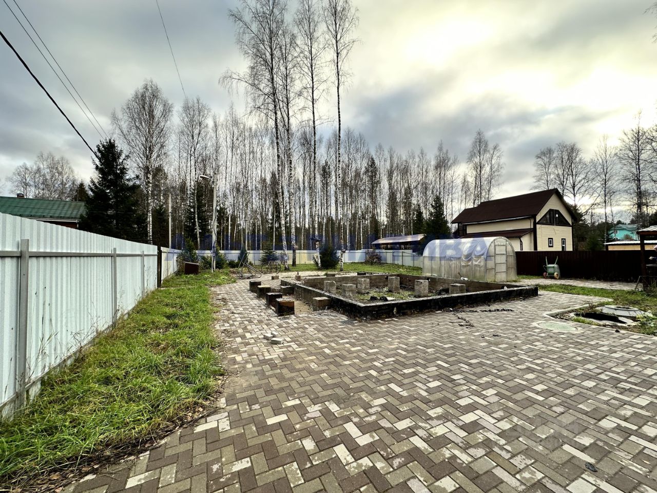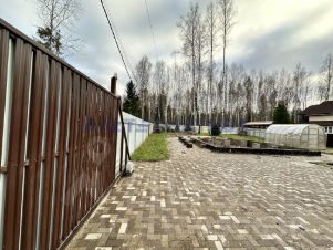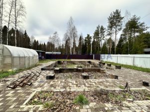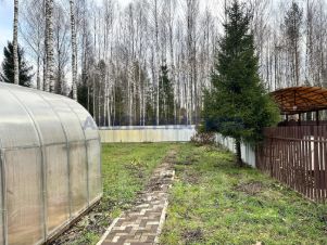 По периметру участок огорожен забором, есть откатные ворота, калитка. На участке дорожки выложены плиткой. Есть хозблок, ленточный фундамент 7х7. Собственная скважина, септик. Также на участке есть теплица.