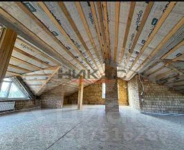 Общая площадь 250 кв., 13.5 м на 12 м, 2 этажа, на первом этаже выделено 3 комнаты по 17-18 метров, кухня гостиная около 28 метров, с выходом на террасу, второй этаж свободной планировки, можно выделить несколько спален. Все коммуникации, теплые водяные полы на первом этаже, радиаторы на втором, отопление от газового котла, вода скважина, канализация септик.. К поселку подходит хорошая асфальтовая дорога. В пешей доступности остановка общественного транспорта.