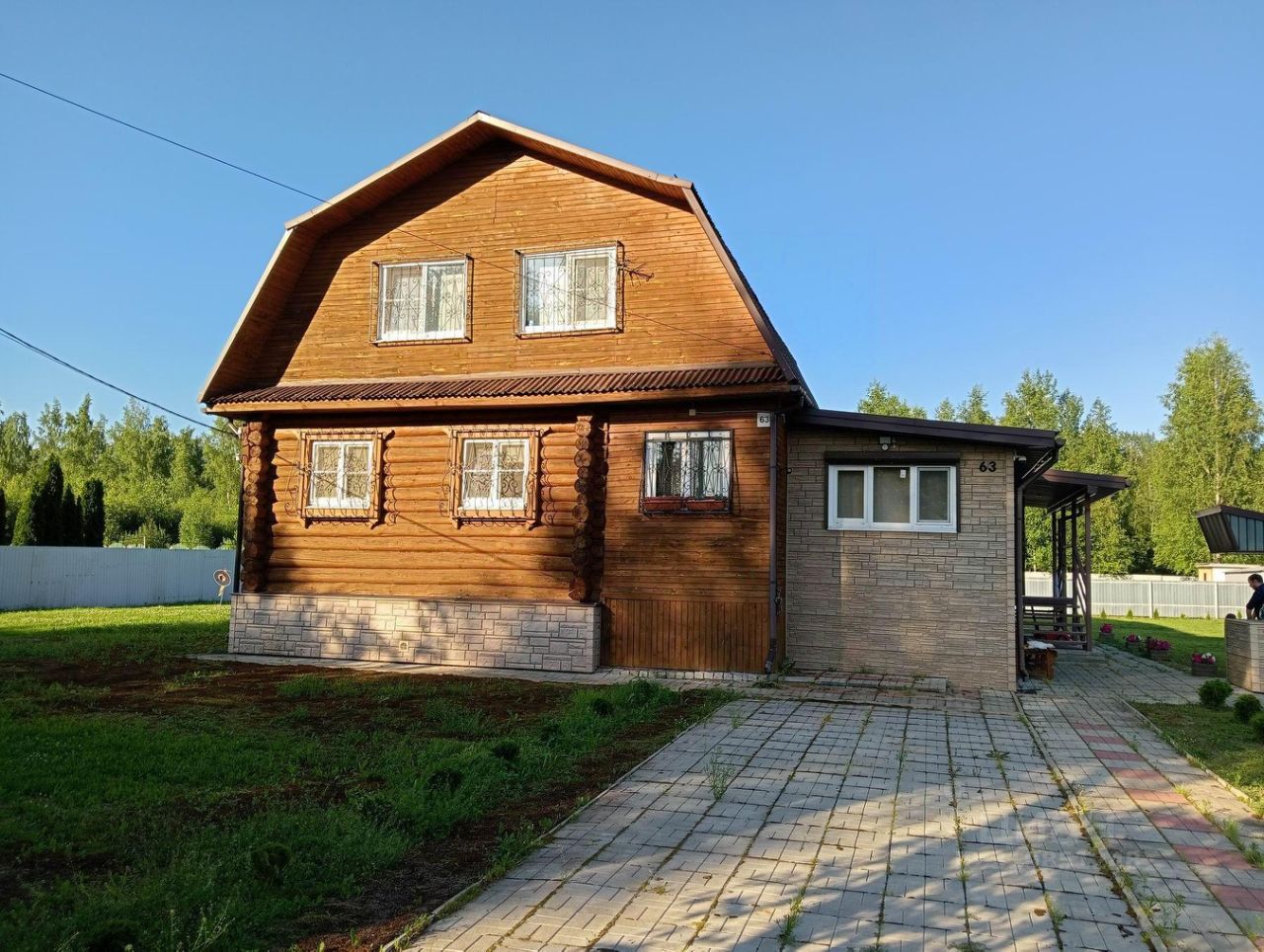 Материалы стен: 1 этаж бревно, 2 этаж каркас;