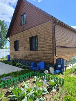 Дом кирпичный, в прошлом году утеплен и отделан металло-сайдингом с гидроизоляцией. Сделан евроремонт от застройщика - полы ламинат, пластиковые окна, евродвери. На первом этаже расположены большая кухня-гостинная, просторный холл, удобный раздельный санузел и две спальни.