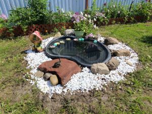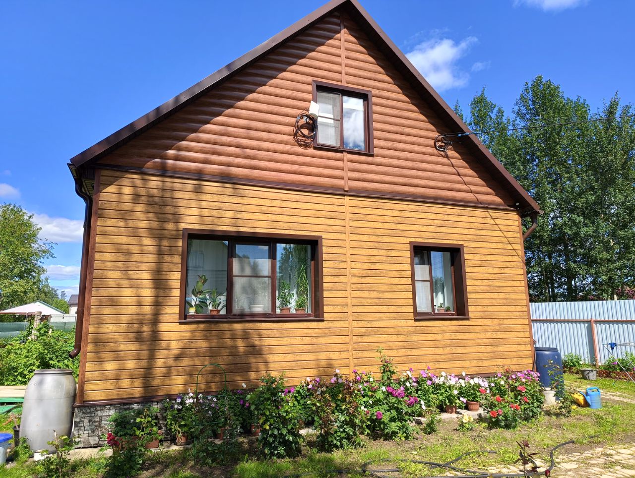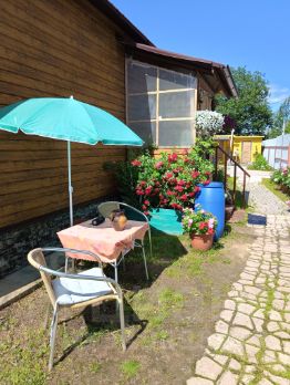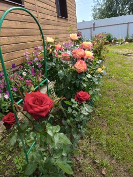 Обустроены грядки и теплица для выращивания овощей, много клубники и земляники, плодоносящие кустарники и деревья: яблони, сливы, груша, вишня, черешня, малина, жимолость, малина, виноград. Более 20 кустов роз и другие многолетние цветы.