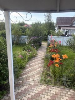 Вся территория ухожена, двор вымощен плиткой и тропинками, большое количество многолетних цветов, плодово ягодных деревьев и кустарников.