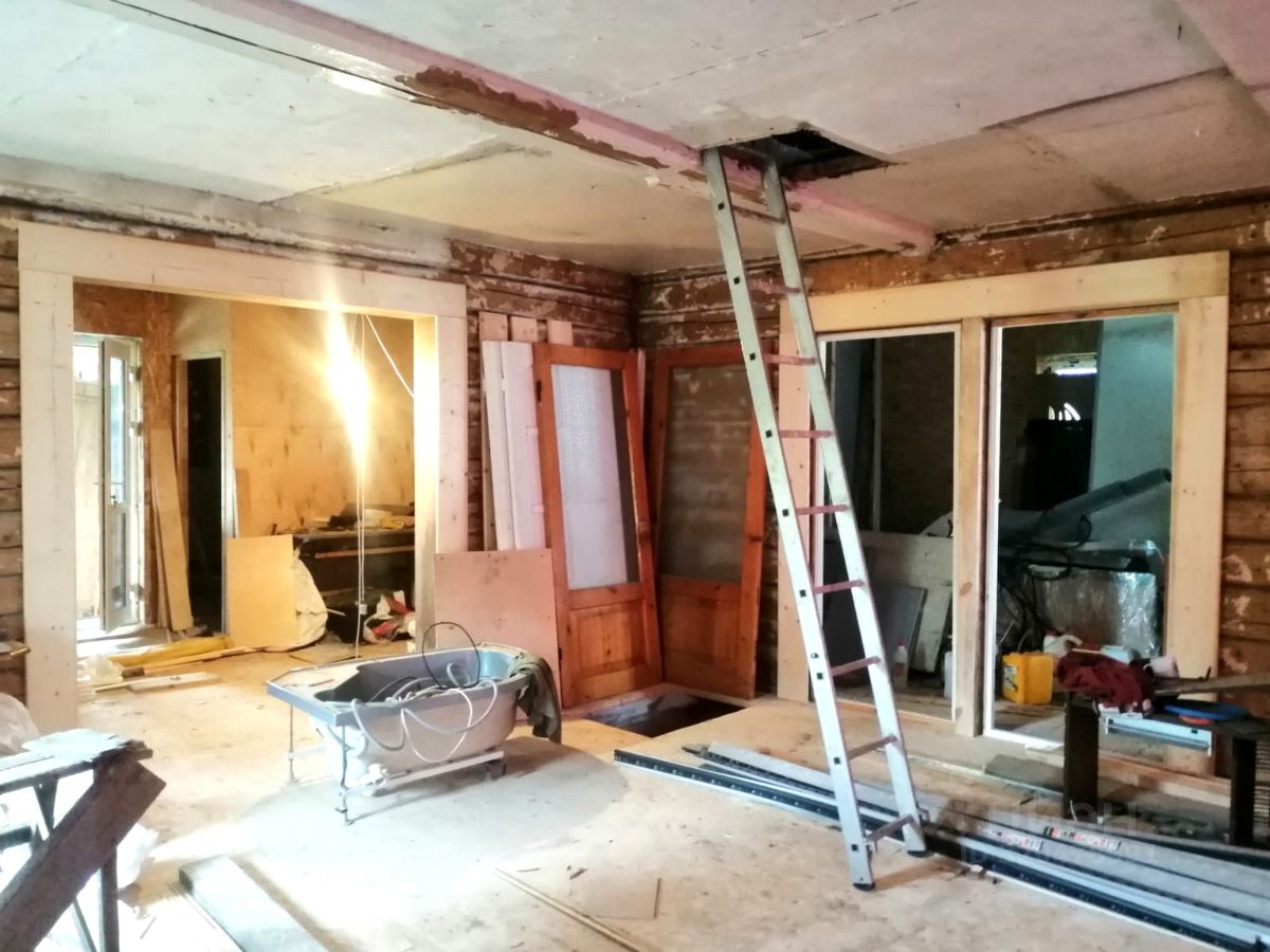 Площадь дома 95 кв м Фундамент дома кирпичный, нижние бревна заменены на новые, фундамент подняли и утеплили. Подпол выровнен, засыпан сухим песком. Дом внутри бревно, очистили под покраску.