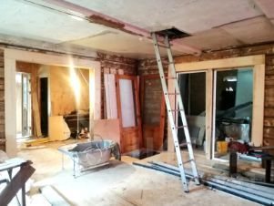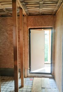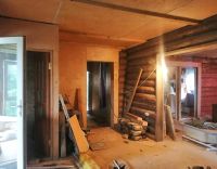 В ней располагаются: прихожая, сан/узел, спальня, котельная, закрытая веранда с выходом на участок, и кухня. В старом бревенчатом доме, одна большая комната.