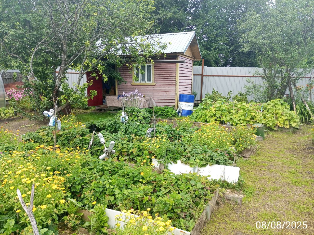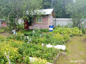Участок 4 сотки, на территории бытовка, колодец, сарайка, теплица, а также : смородина, крыжовник, яблоня, клубника, малина и цветы.