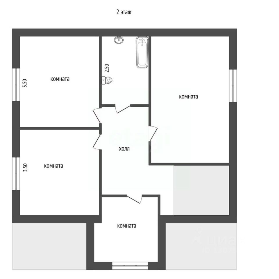 - на втором этаже: совмещённый санузел + холл + три спальни.