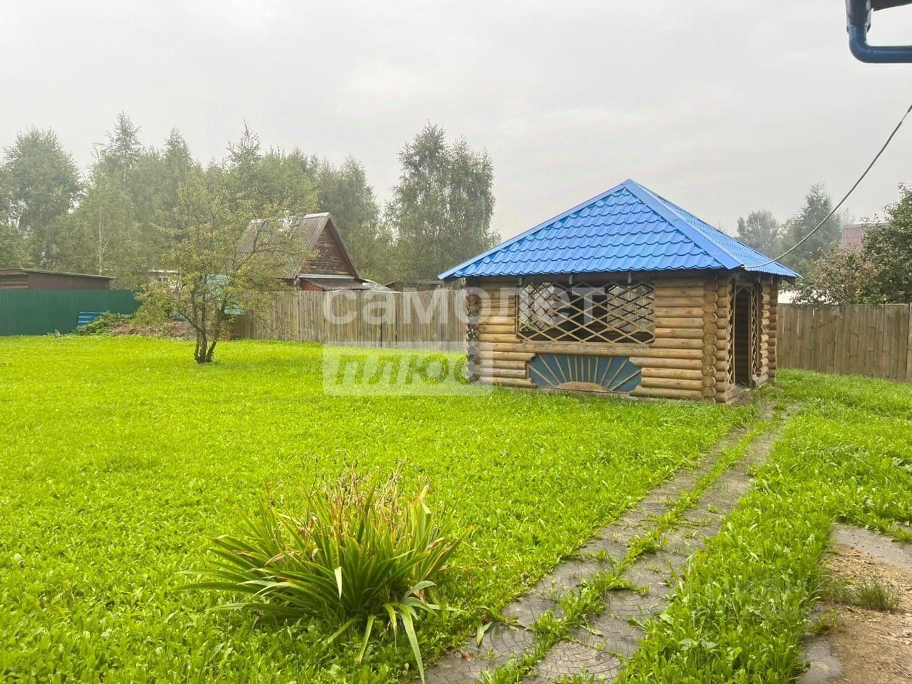 Имеется большая беседка для уютных вечеров с близкими из круглого бревна, в беседке электросветильники, розетки;