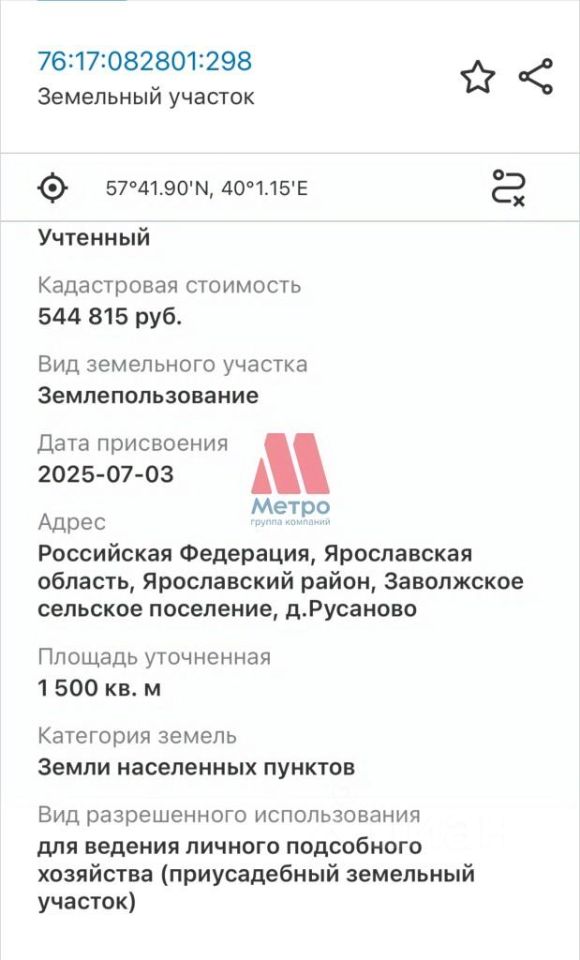 Арт. 87292097. Н Метро представляет к продаже земельный участок в д. Русаново, Ярославского района.