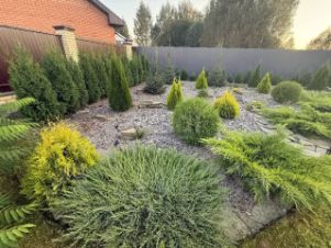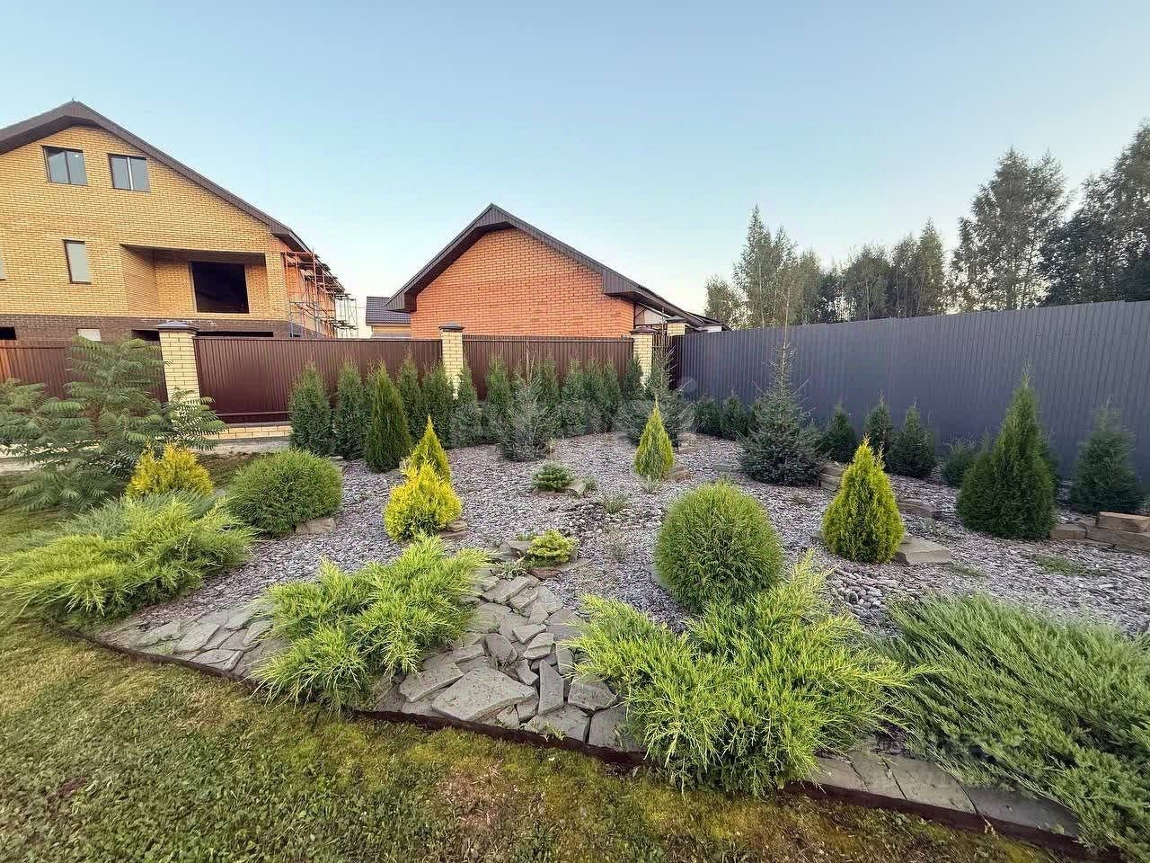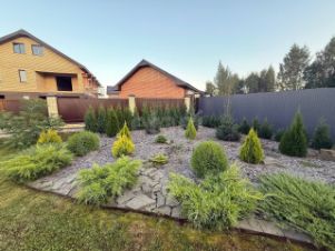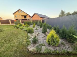 ***Участок ровный, огороженный, благоустроенный с красивыми хвойными многолетниками.
